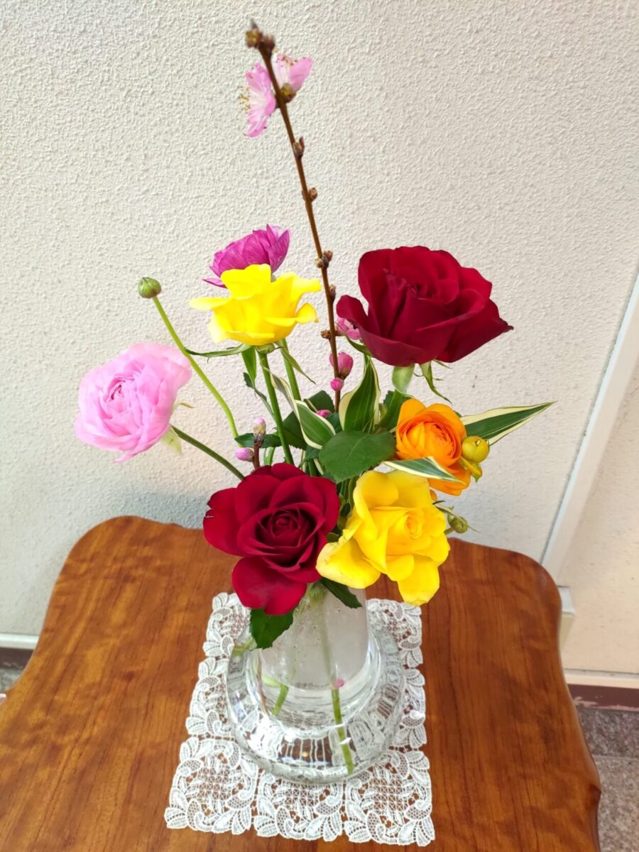 2024.02.19 事務員のお便り ~2月のお花~ #スタッフ#日常・事務員のお便り おはようございます。 今日もあいにくの雨模様ですが、暖かくなってきて大分過ごしやすく感じますね。 早速のお花の紹介です。 レインボーフラワーさんのお花で、バラとラナンキュラス、蕾は桃です。いつもきれいなお花をありがとうございます。 色とりどりで綺麗に大きく咲いております。 今週の金曜日も天皇誕生日で祝日休みです。 休日でもメールフォームの方からご相談の予約を受け付けておりますので、お気軽にお問い合わせください。 今週もよろしくお願いします!